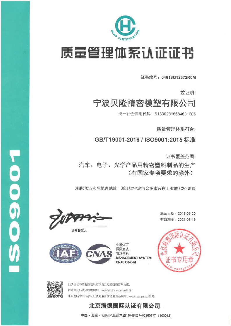 貝隆精密科技股份有限公司(股票代碼:301567)成立于2007年,坐落于中國模具之鄉、浙東名城浙江省余姚市,公司是專業從事精密注塑、沖壓、埋入成型、模具研發與制造的高新技術企業。被評定為國家制造業單項冠軍、國家級專精特新小巨人企業、國家知識產權優勢企業。